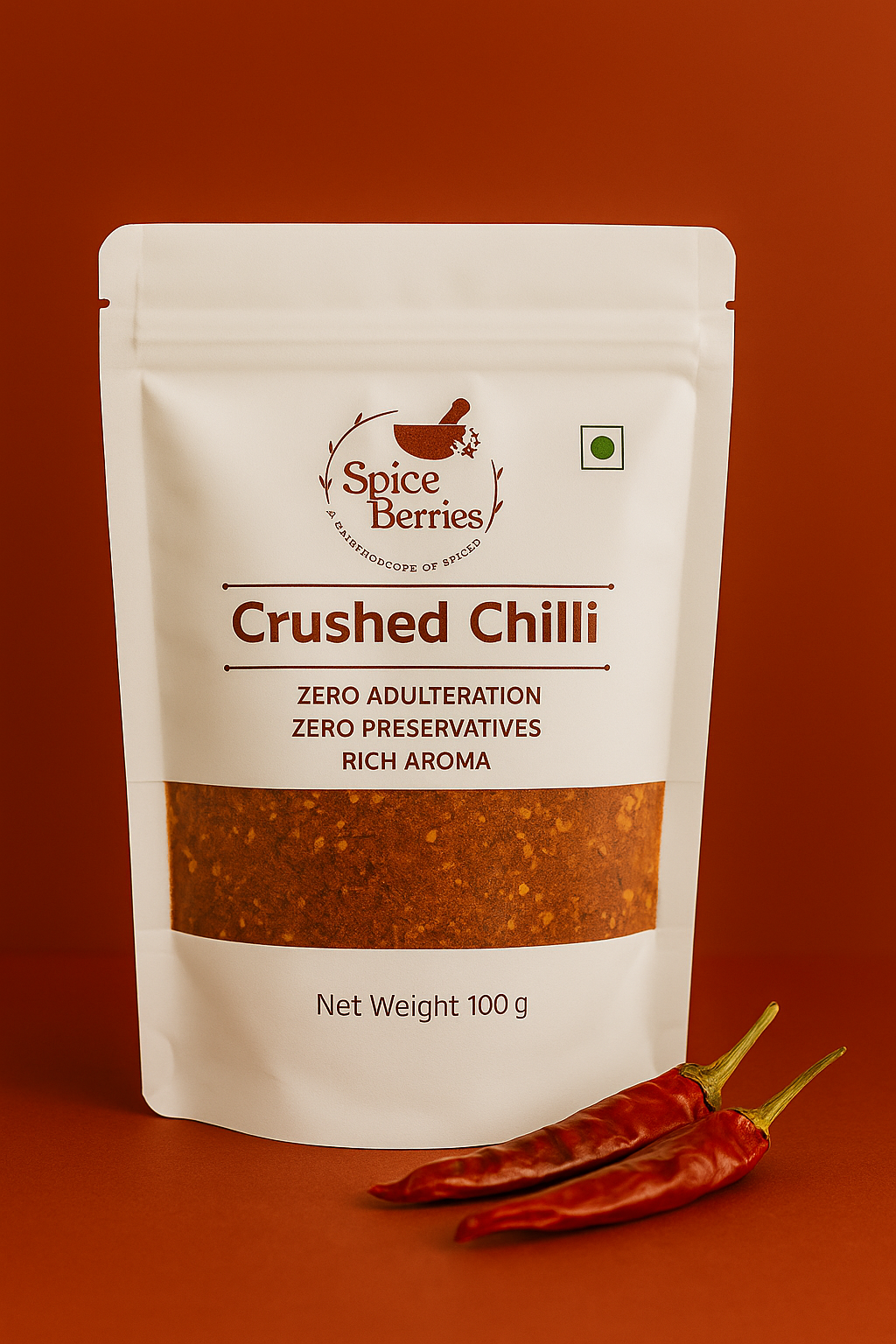 Add a fiery kick to your favorite dishes with SpiceBerries Chilli Flakes, made from sun-dried, crushed red chillies for vibrant color and bold, balanced heat. Perfect for pizzas, pastas, stir-fries, curries, and snacks, our chilli flakes bring restaurant-style spice right to your kitchen.